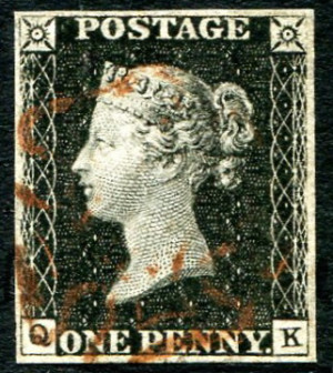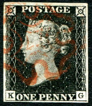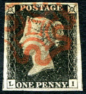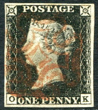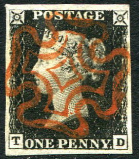 1d Intense Black (TD) Plate 4 -Superb. Cancelled by a lovley strike of pretty much full strike Red MX.. 4 good to mostly wide/large margins-Most appealing---£325