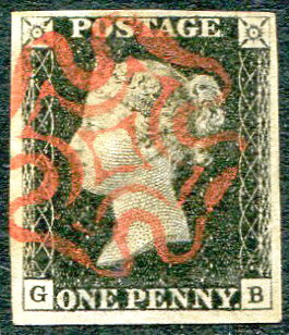 1d Black (GB) Plate 4 -very Fine- cancelled by a lovely Red MX- 4 good to large margin-Attractive- £220