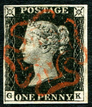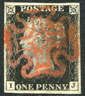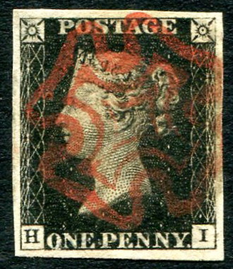1d Intense Black (IJ) Plate 8-Fine used cancelled by a fine vermilion red MX- 4 good to wide margins--£185