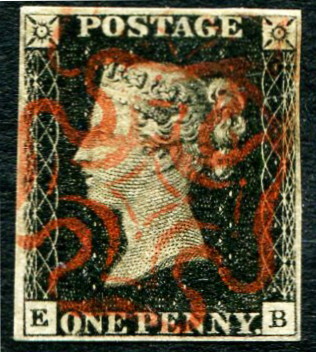 1d Black (EB) Plate 8 - Fine used cancelled by good red MX- 4clear to good margins all around- £88